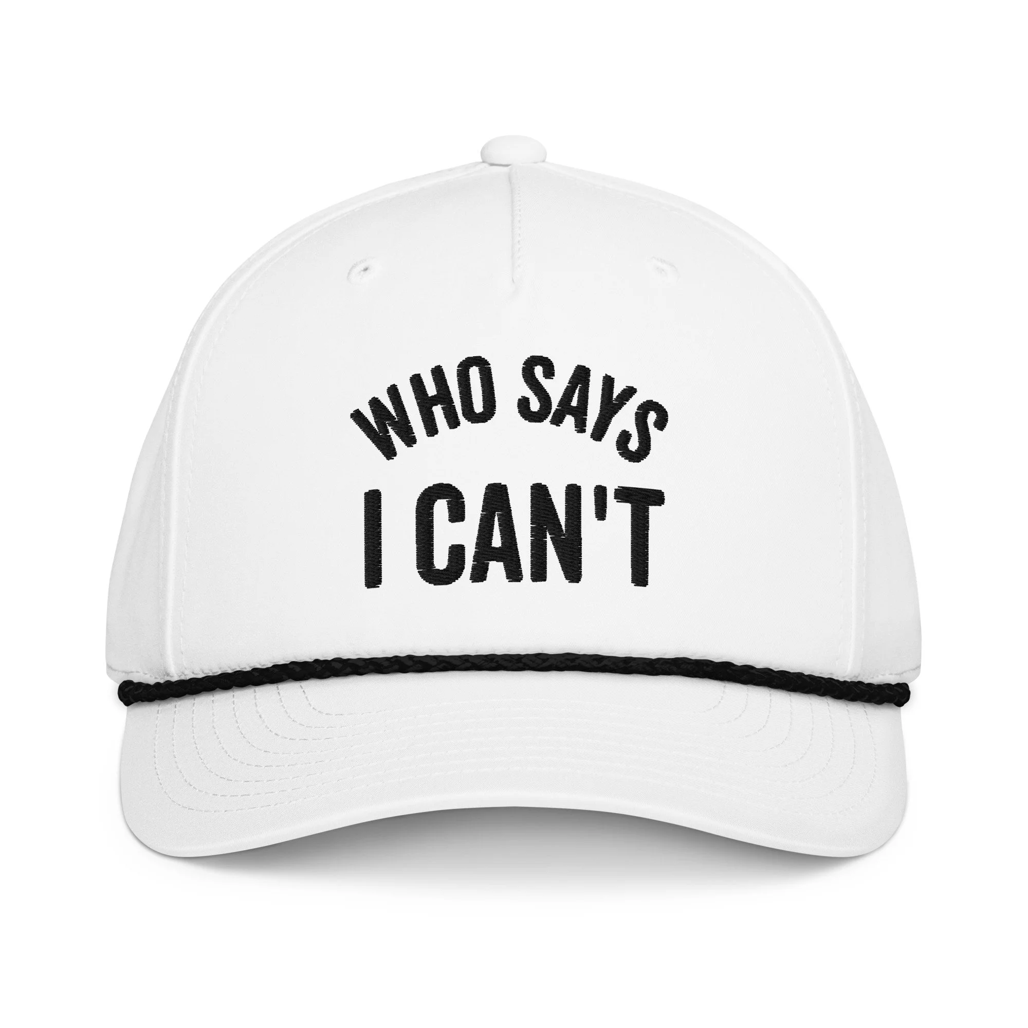 • Braided rope detailing on the bill